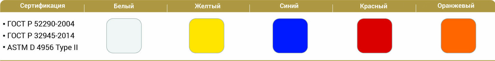 АSТМ D 4956−04 Тип II, что подтверждено сертификатами соответствия.