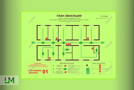 видимости планов эвакуации и эвакуационных знаков в помещении при отсутствии освещения. Срок службы пленки более 7 лет.