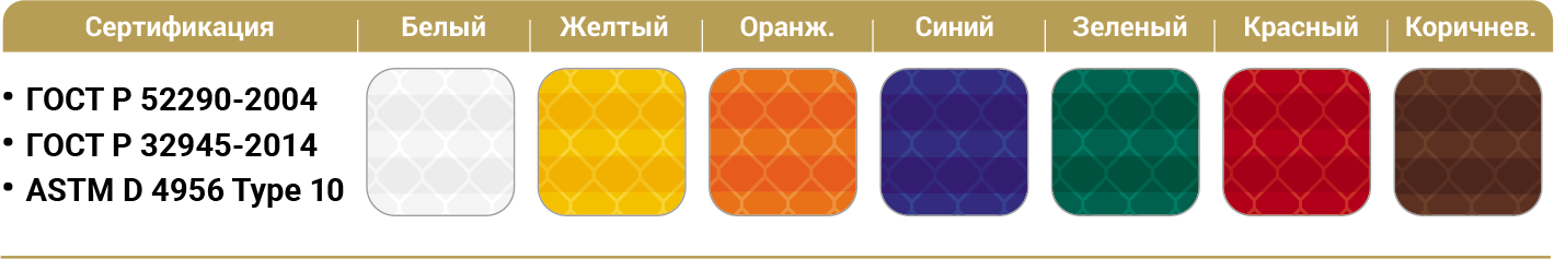 RKЅ-7000 «PREMIUM» превосходит аналогичные материалы, за счет длительной световозвращательной способности, устойчивым к интенсивным климатическим изменениям покрытием и особой системы распределения отражающих элементов.