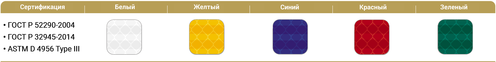 ГОСТ Таможенного регламента Таможенного союза 32945−2014 (класс Iб), а также европейской спецификации ASTM D 4956−04 Тип III и Тип IV, что подтверждено сертификатами соответствия.